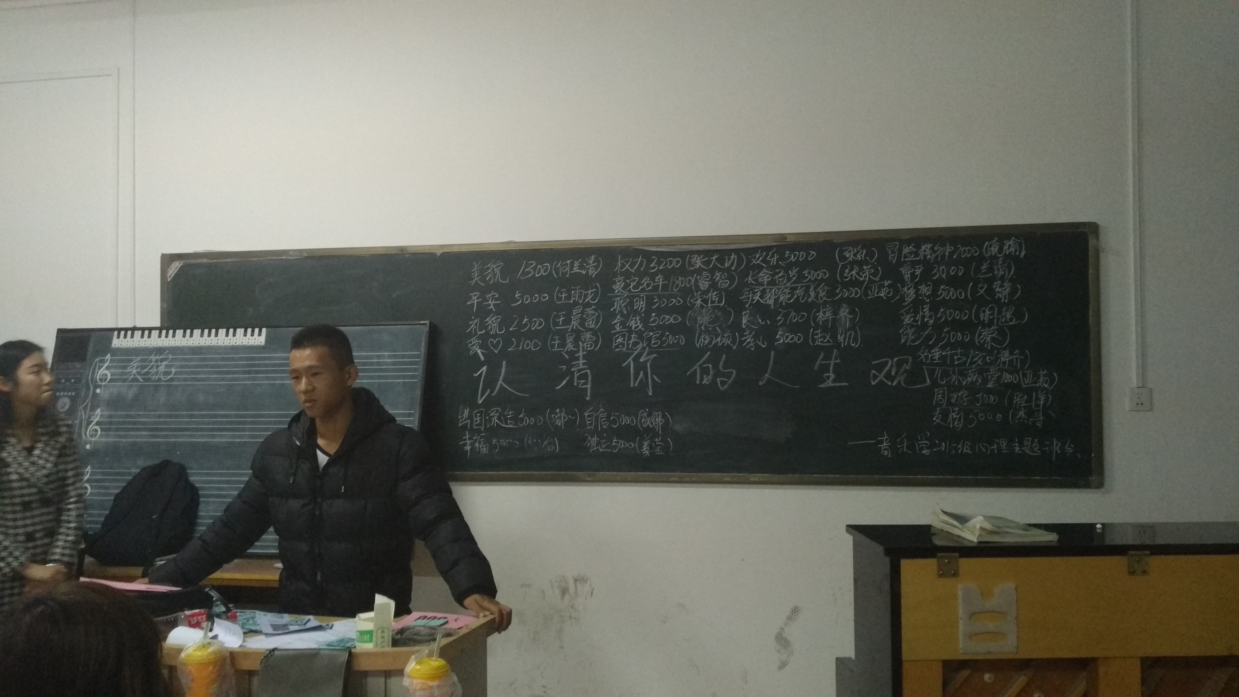 2015年11月4日晚8点30分,kaiyun体育网页登录入口音乐学2015级全体同学于东3-150教室召开树立正确人生观主题班会,全班同学参加本次班会。班会由心理委员刘宏慧主持,本次会议的目的是帮助同学们树立正确的人生观和价值观。
