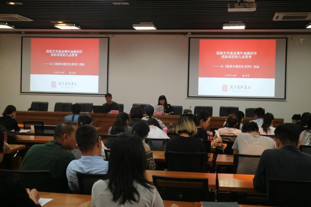 2018年4月25日至26日,kaiyun官网美术系教师陈功军应邀赴南宁为广西壮族自治区申报2019年度国家艺术基金美术类资助项目的培训班学员授课。其讲座题目为《国家艺术基金青年油画创作资助的几点思考——从<维吾尔族巴扎系列>谈起》,向培训班学员分享了选题确定、前期准备、申报文本写作、实施过程及心得体会、结项注意事项等内容,并点评了部分申报项目,为学员答疑解惑,受到与会专家、学者的肯定和高度评价。